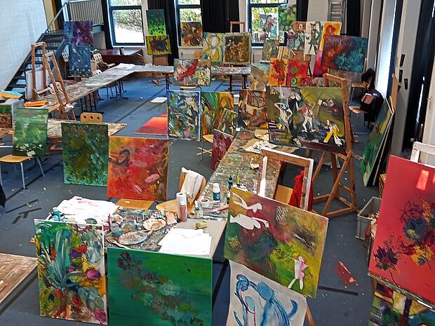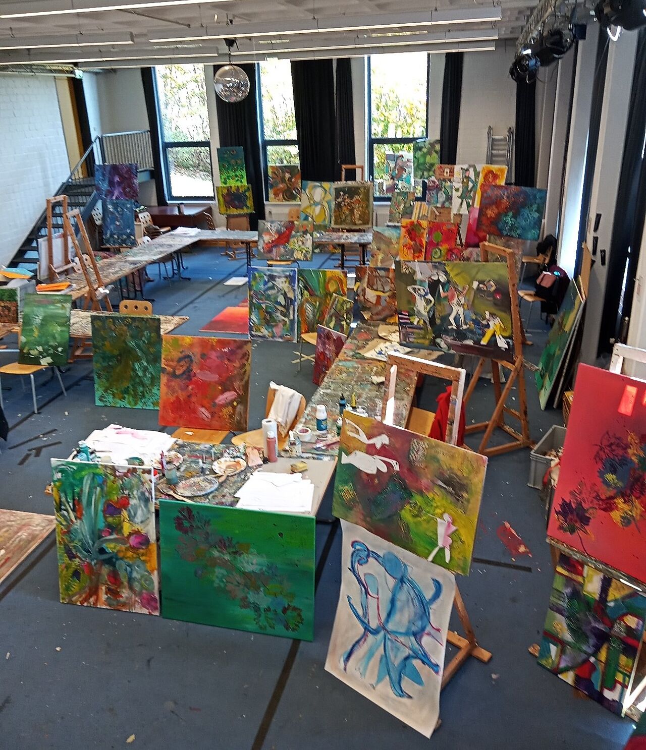 Und wieder ist ein Kunstbergwerk beendet: X: Innere Freiheit in der Malerei -experimentelles Acrylmalen in Farbe, Form und Abstraktion unter der Leitung von Isabella Moog.