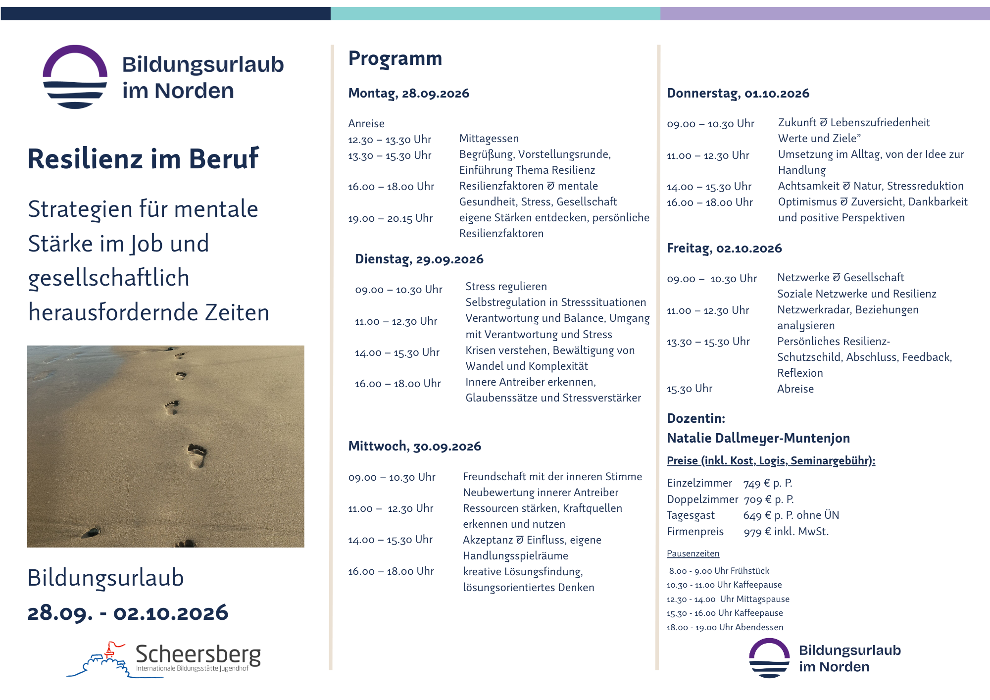 Alle Preise inkl. Kost, Logis, Seminargebühr sowie Unterlagen.